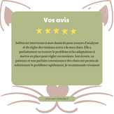 Je vous accompagne dans les problématiques que vous rencontrez avec votre chat afin de vous aider à mieux le comprendre et vous amener vers une cohabitation harmonieuse. Je vous accompagne aussi en prévention avant un changement pouvant générer du stress (déménagement, adoption...).